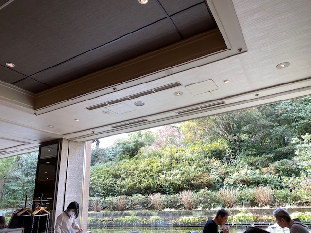 ちょうどまん延防止等重点措置期間中で、同一グループの同一テーブルへの案内を4人以内とすることとなっていたので、その人数内に分かれて着席です。テーブルとテーブルの間はとても広くて話ができる距離ではありませんが、感染対策はばっちりです。