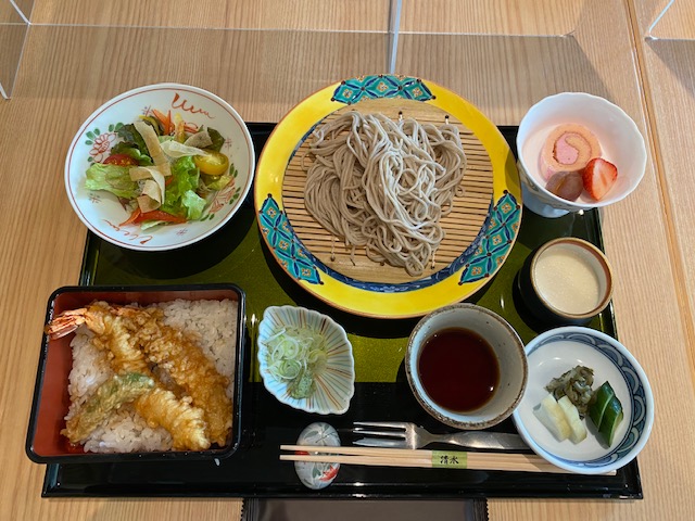 お蕎麦とハーフ天重をいただきました。お話したいところですが、黙食でいただきます。美味しかったです!