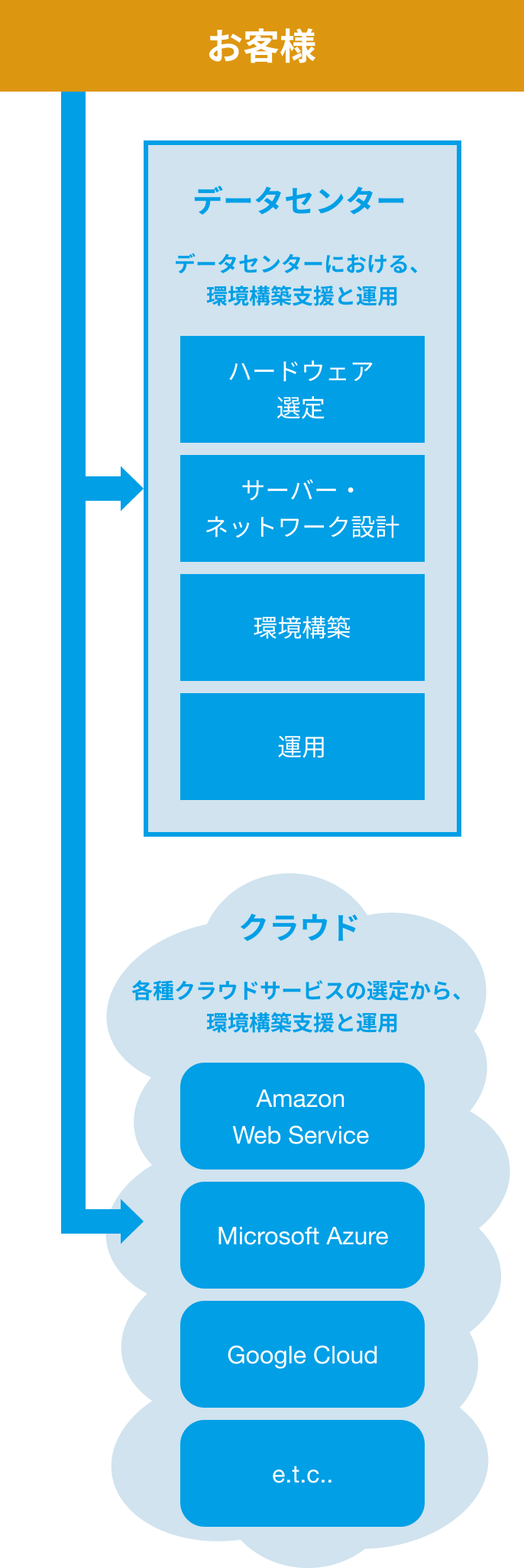 お客様のIT基盤について、設計から構築・運用まで幅広い支援を行っております